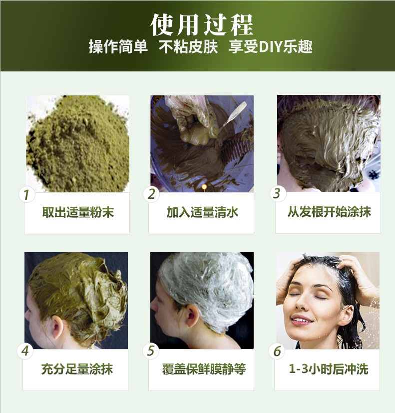 5、 使用简便,搅拌均匀即可直接梳理,易洗,不易滴落眼睛,不沾头部皮肤。